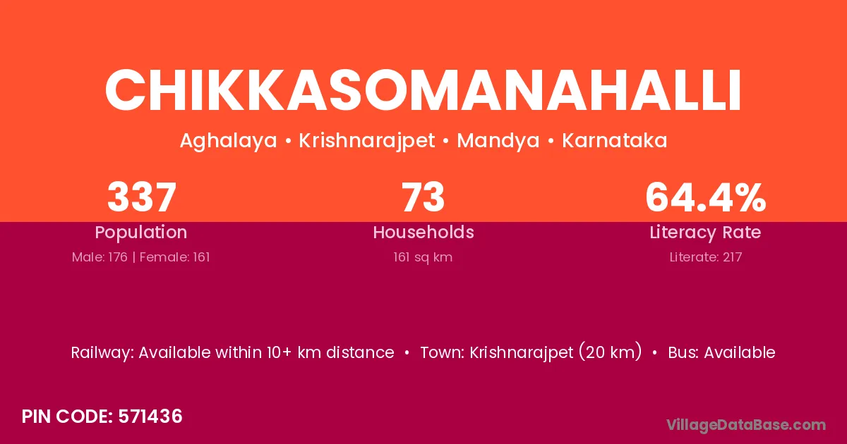 Krishnarajpet (20 km) is the nearest town to Chikkasomanahalli village for major economic activities and is located approximately 20 km away.