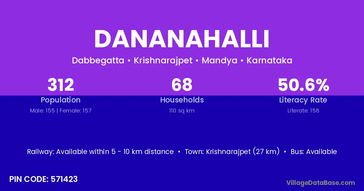 Krishnarajpet (27 km) is the nearest town to Dananahalli village for major economic activities and is located approximately 27 km away.