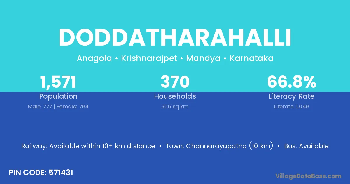 According to Census 2011 information, the village code of Doddatharahalli village is 571431.