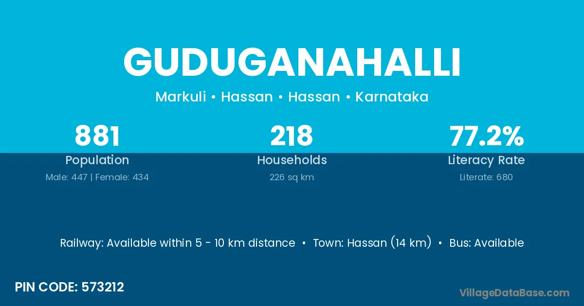 Krishnarajpet (18 km) is the nearest town to Guduganahalli village for major economic activities and is located approximately 18 km away.