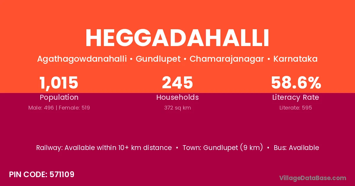 Heggadahalli village has a total population of 1,433 people, of which 732 are males and 701 are females.