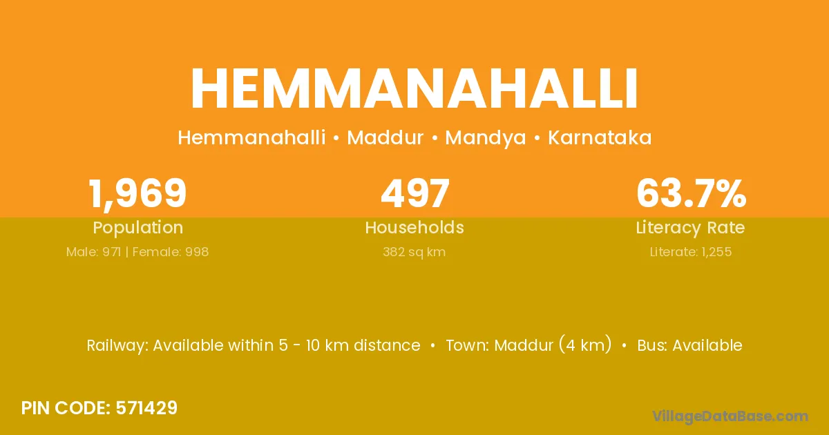 Krishnarajpet (3 km) is the nearest town to Hemmanahalli village for major economic activities and is located approximately 3 km away.