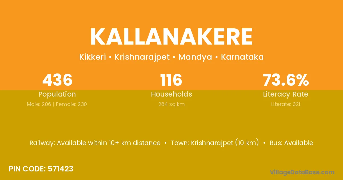 Krishnarajpet (10 km) is the nearest town to Kallanakere village for major economic activities and is located approximately 10 km away.