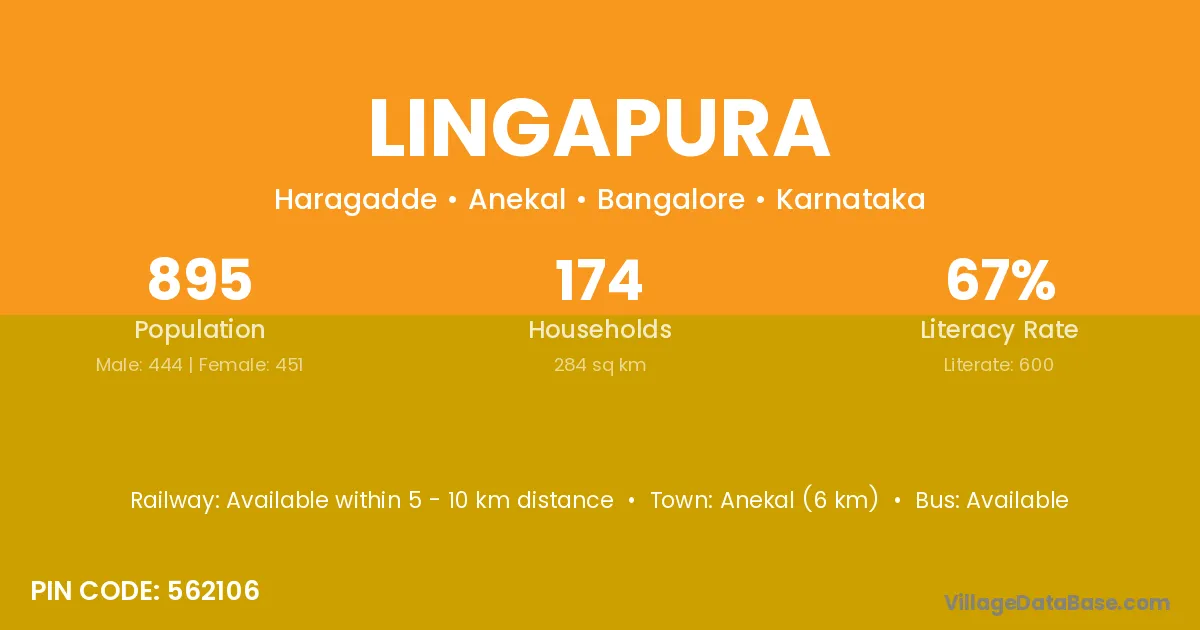 Krishnarajpet (14 km) is the nearest town to Lingapura village for major economic activities and is located approximately 14 km away.
