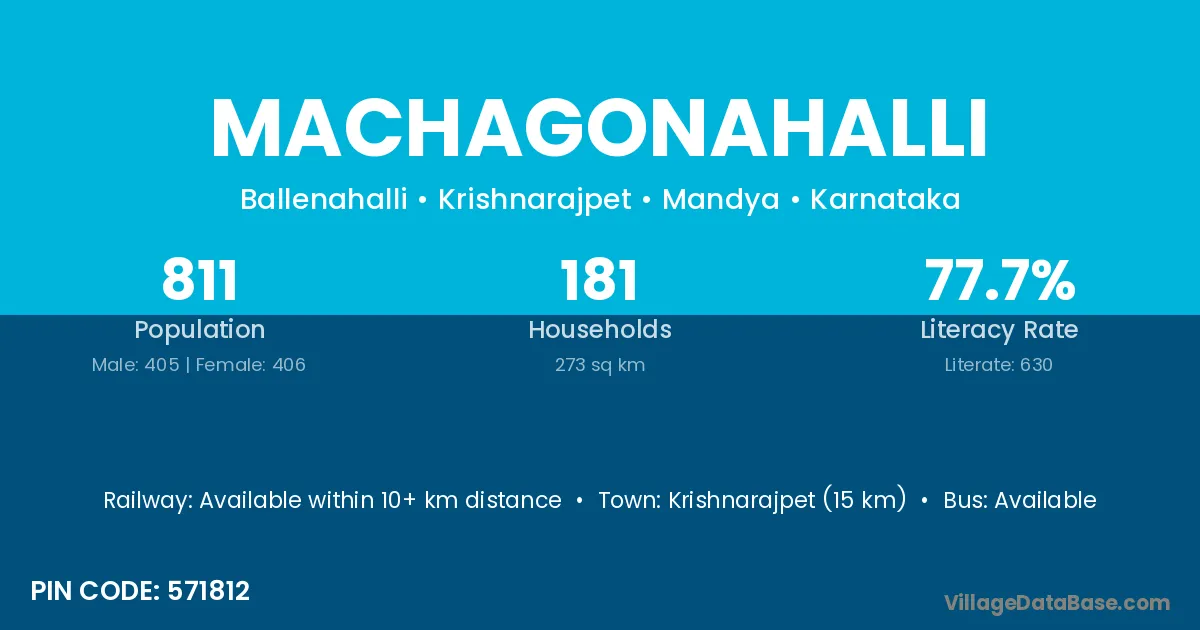 Krishnarajpet (15 km) is the nearest town to Machagonahalli village for major economic activities and is located approximately 15 km away.