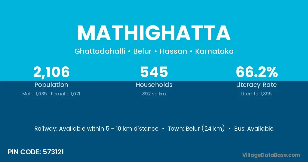 Krishnarajpet (3 km) is the nearest town to Mathighatta village for major economic activities and is located approximately 3 km away.