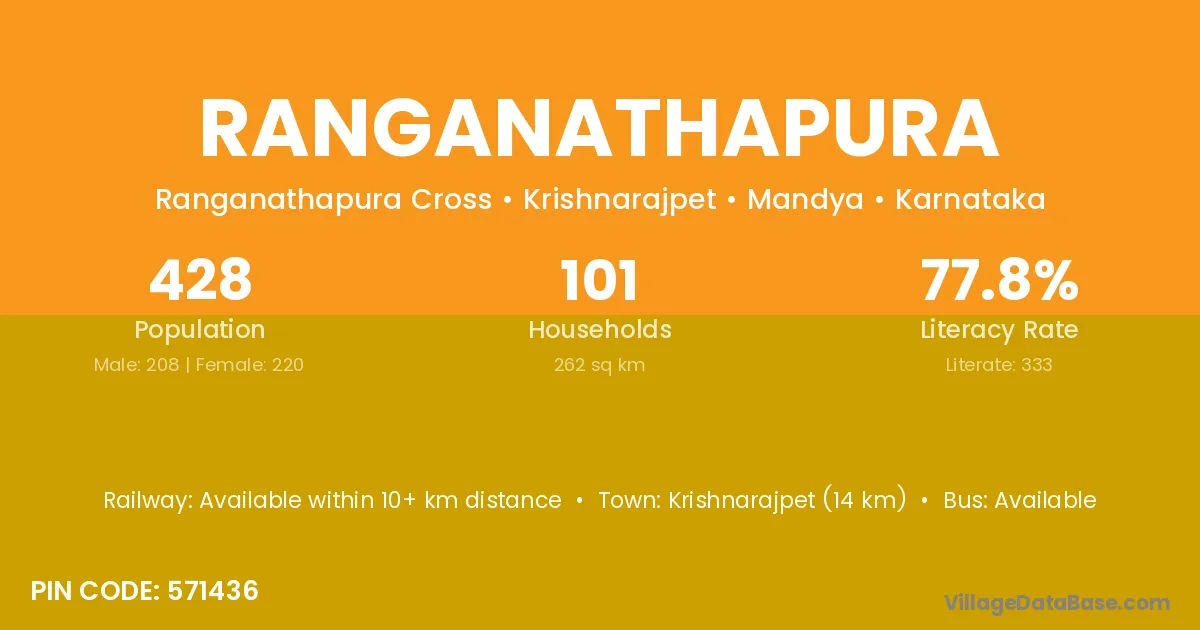 Ranganathapura village has a total population of 428 people, of which 208 are males and 220 are females.