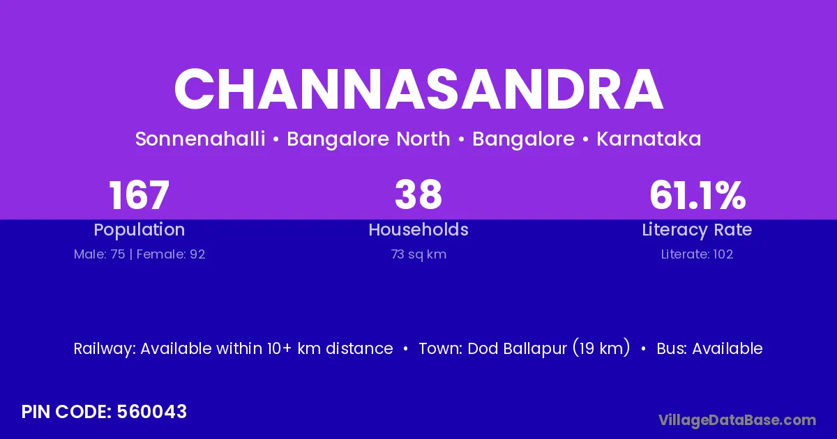 Maddur (2 km) is the nearest town to Channasandra village for major economic activities and is located approximately 2 km away.