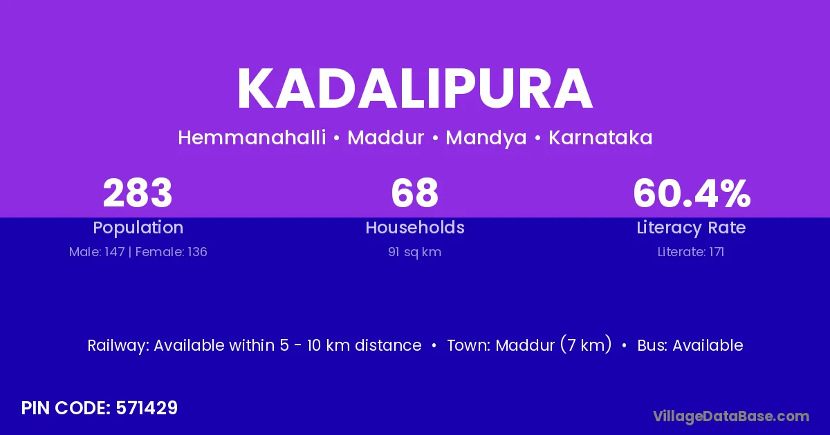 Maddur (7 km) is the nearest town to Kadalipura village for major economic activities and is located approximately 7 km away.