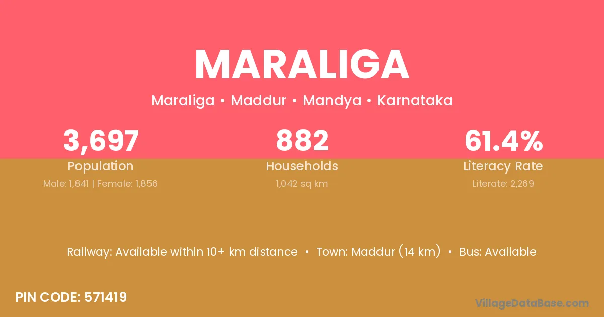 Maddur (14 km) is the nearest town to Maraliga village for major economic activities and is located approximately 14 km away.