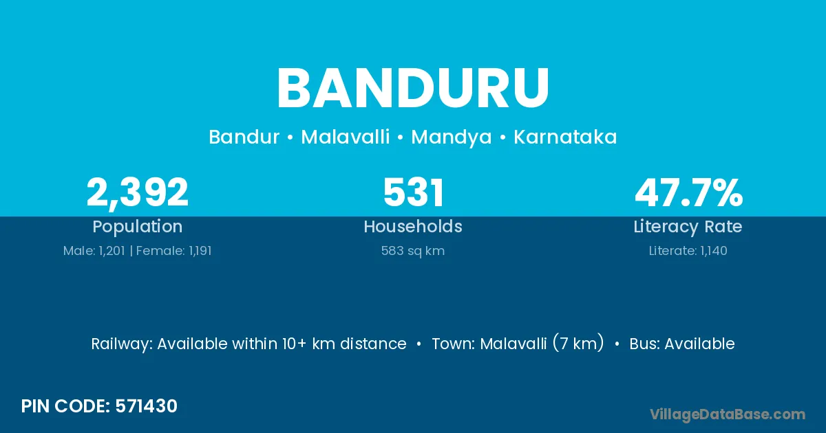 Malavalli (7 km) is the nearest town to Banduru village for major economic activities and is located approximately 7 km away.