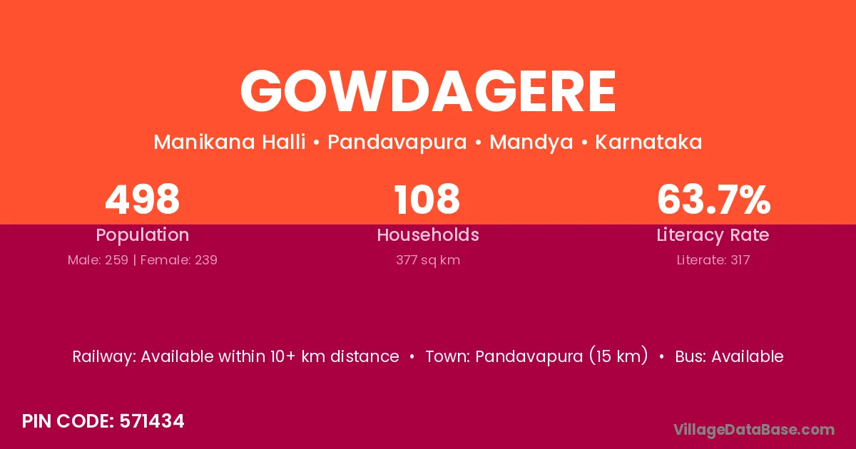 Malavalli (8 km) is the nearest town to Gowdagere village for major economic activities and is located approximately 8 km away.