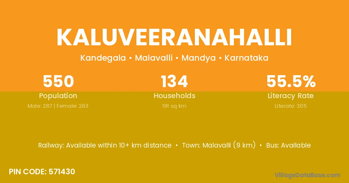 Malavalli (9 km) is the nearest town to Kaluveeranahalli village for major economic activities and is located approximately 9 km away.