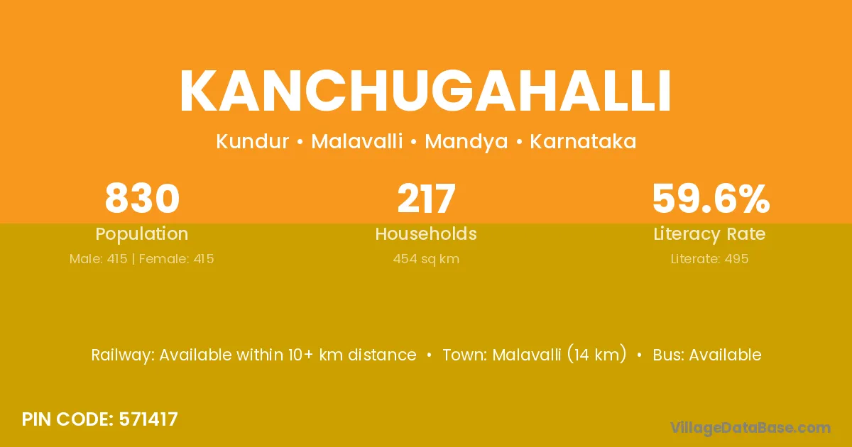 Malavalli (14 km) is the nearest town to Kanchugahalli village for major economic activities and is located approximately 14 km away.