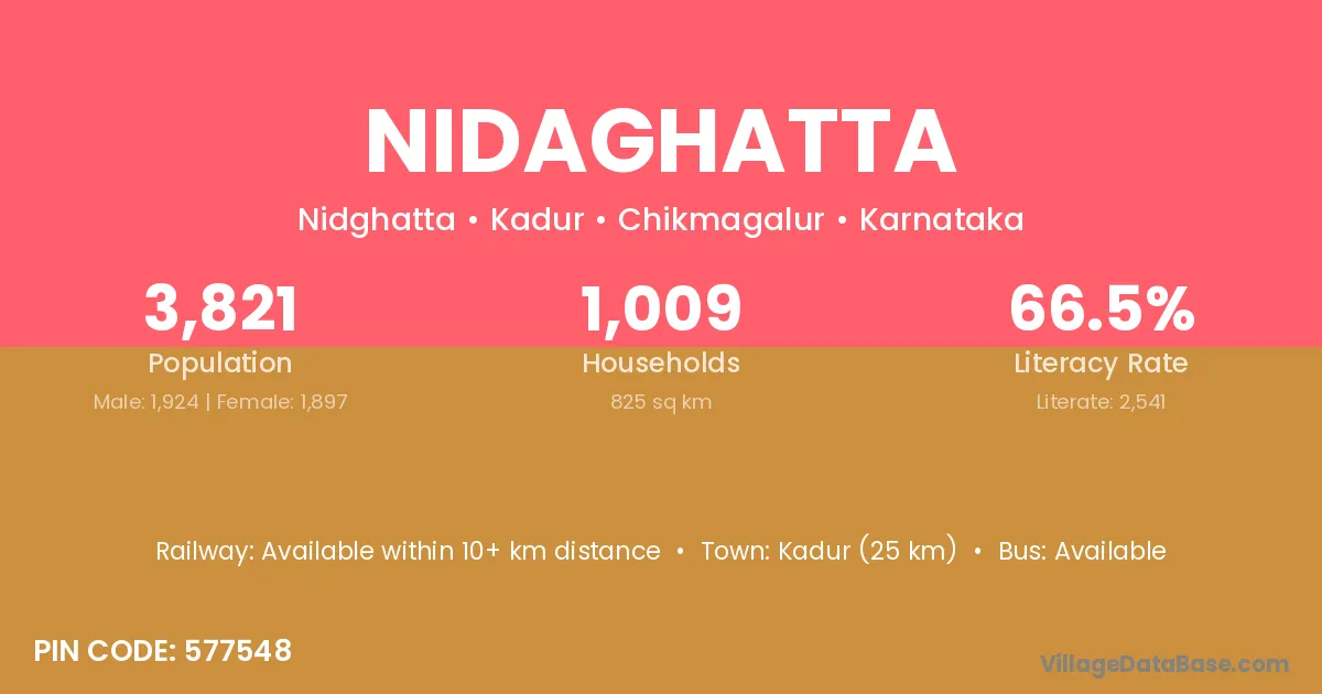 Malavalli (4 km) is the nearest town to Nidaghatta village for major economic activities and is located approximately 4 km away.