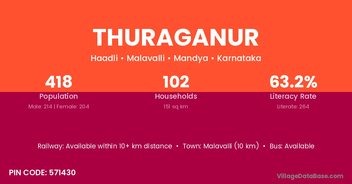 Malavalli (10 km) is the nearest town to Thuraganur village for major economic activities and is located approximately 10 km away.