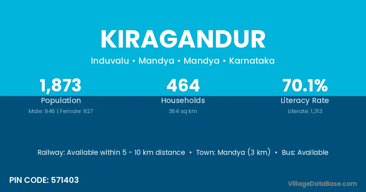 Mandya (3 km) is the nearest town to Kiragandur village for major economic activities and is located approximately 3 km away.