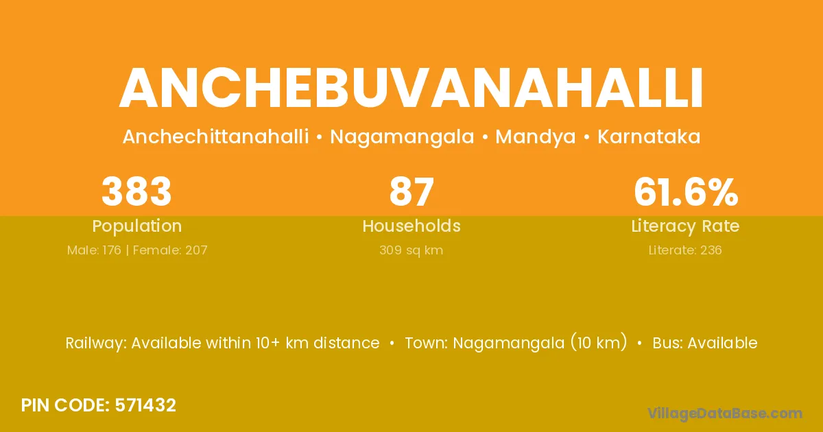 Anchebuvanahalli village has a total population of 383 people, of which 176 are males and 207 are females.