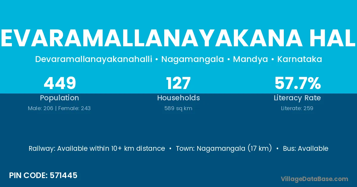 Devaramallanayakana Halli village has a total population of 449 people, of which 206 are males and 243 are females.