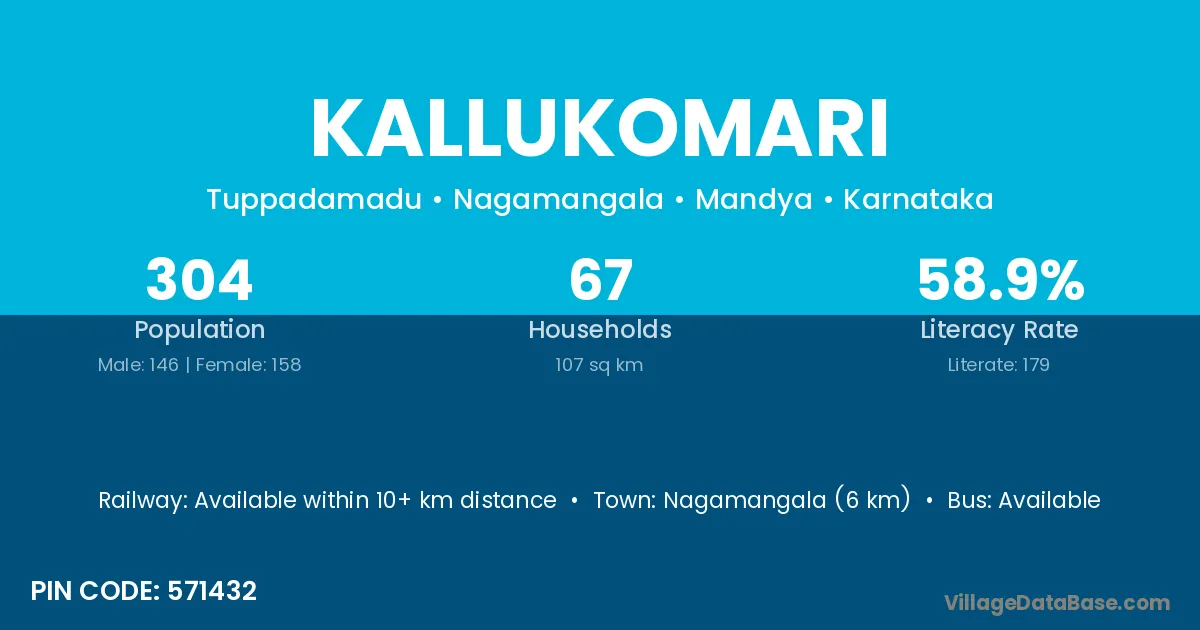 Nagamangala (6 km) is the nearest town to Kallukomari village for major economic activities and is located approximately 6 km away.