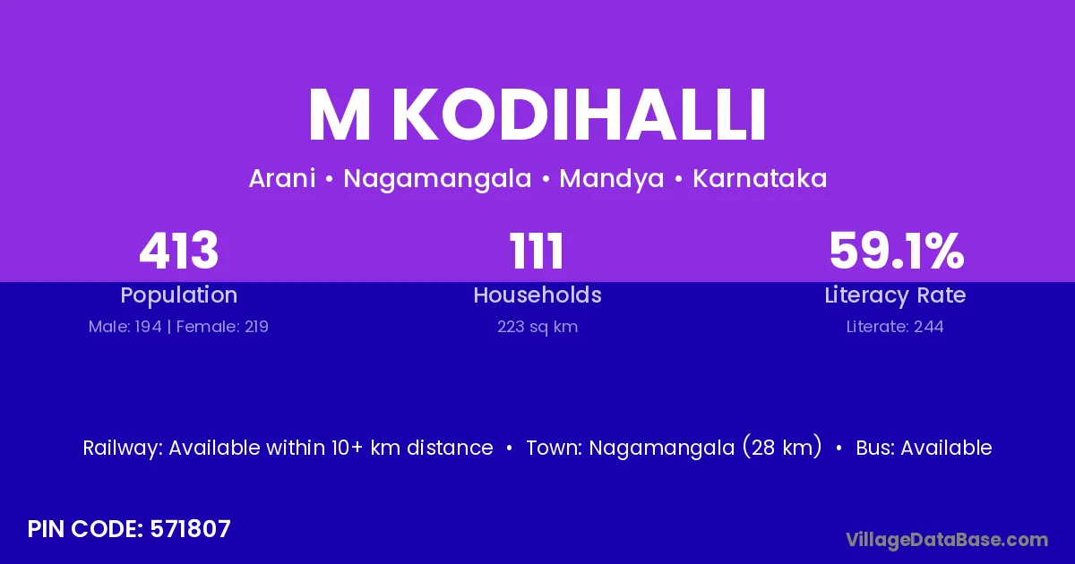 According to Census 2011 information, the village code of M Kodihalli village is 571807.