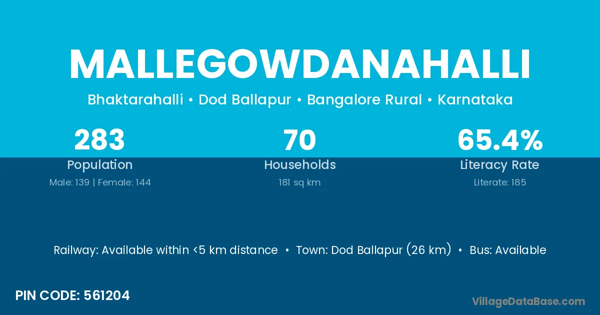 Nagamangala (12 km) is the nearest town to Mallegowdanahalli village for major economic activities and is located approximately 12 km away.