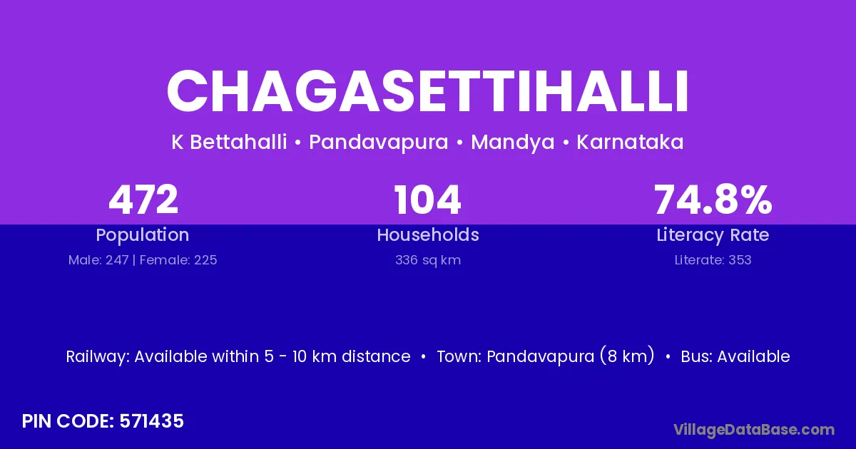 Pandavapura (8 km) is the nearest town to Chagasettihalli village for major economic activities and is located approximately 8 km away.