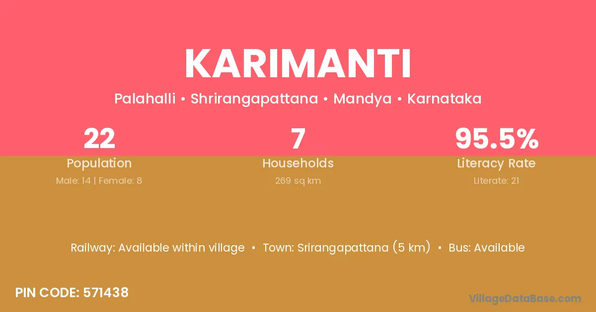 Srirangapattana (5 km) is the nearest town to Karimanti village for major economic activities and is located approximately 5 km away.