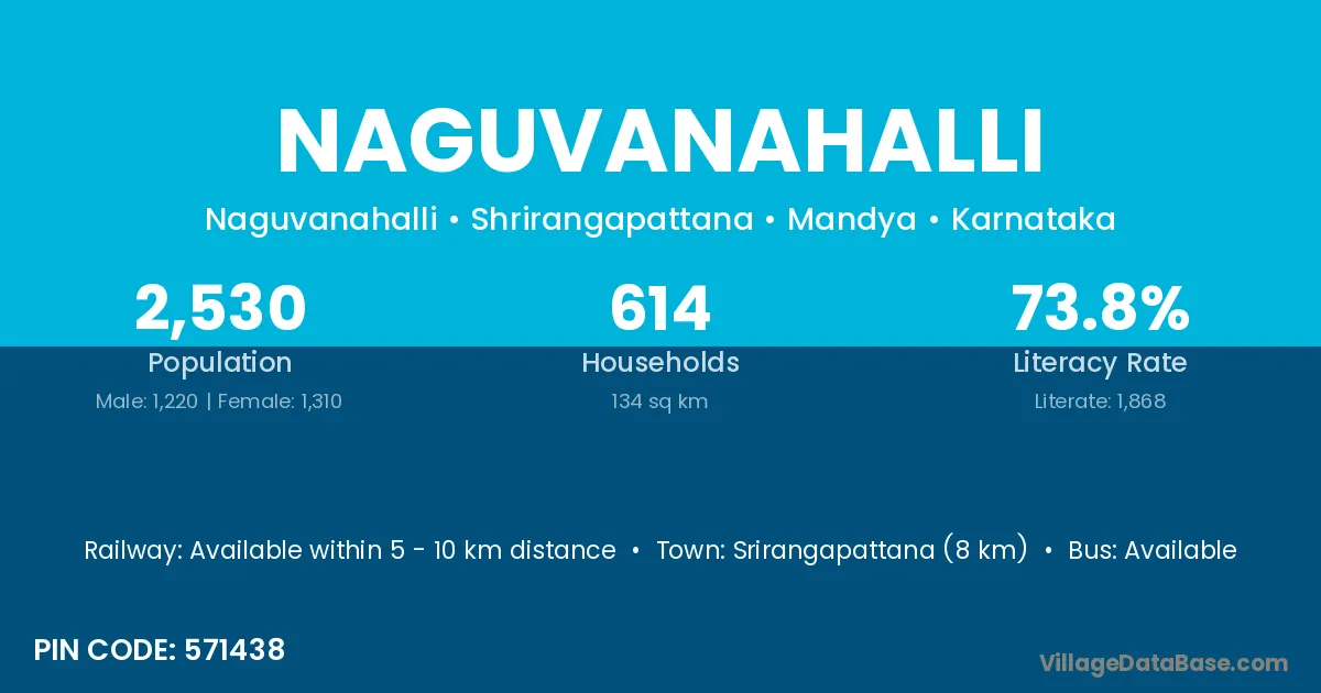 Srirangapattana (8 km) is the nearest town to Naguvanahalli village for major economic activities and is located approximately 8 km away.