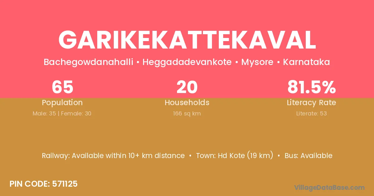 Hd Kote (19 km) is the nearest town to Garikekattekaval village for major economic activities and is located approximately 19 km away.