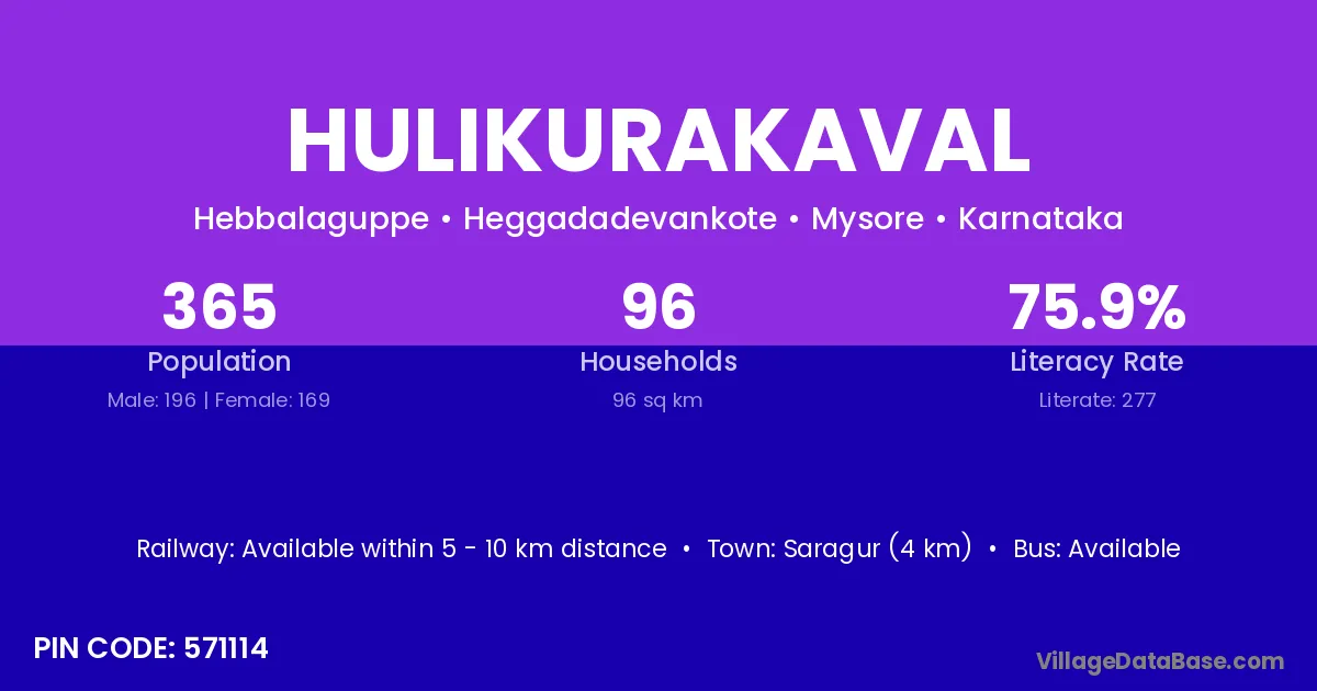 Saragur (4 km) is the nearest town to Hulikurakaval village for major economic activities and is located approximately 4 km away.