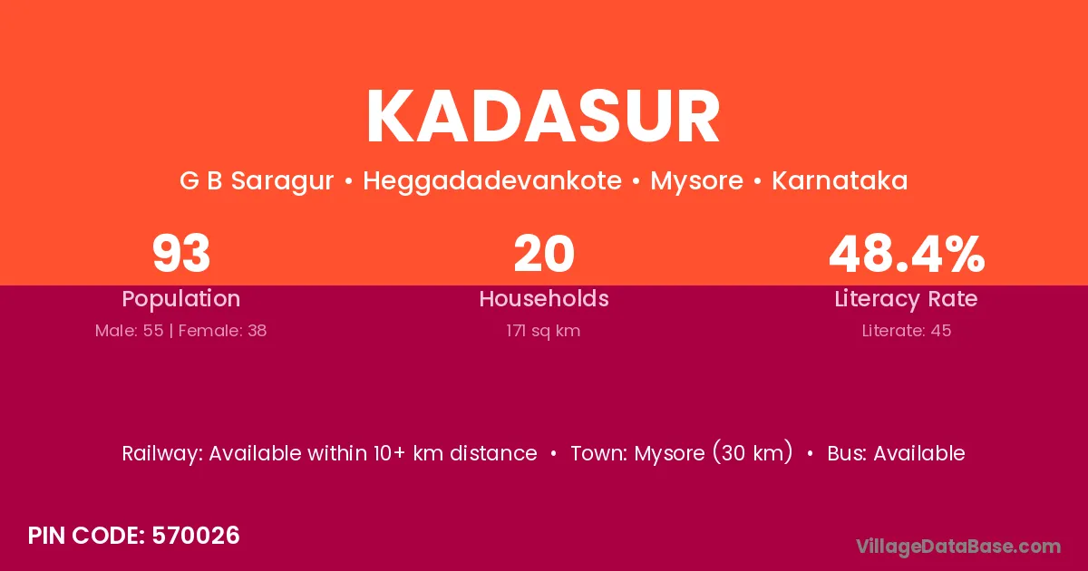 Mysore (30 km) is the nearest town to Kadasur village for major economic activities and is located approximately 30 km away.