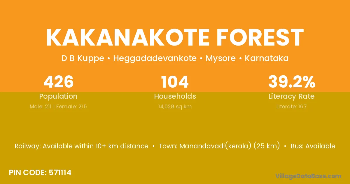Manandavadi(kerala) (25 km) is the nearest town to Kakanakote Forest village for major economic activities and is located approximately 25 km away.