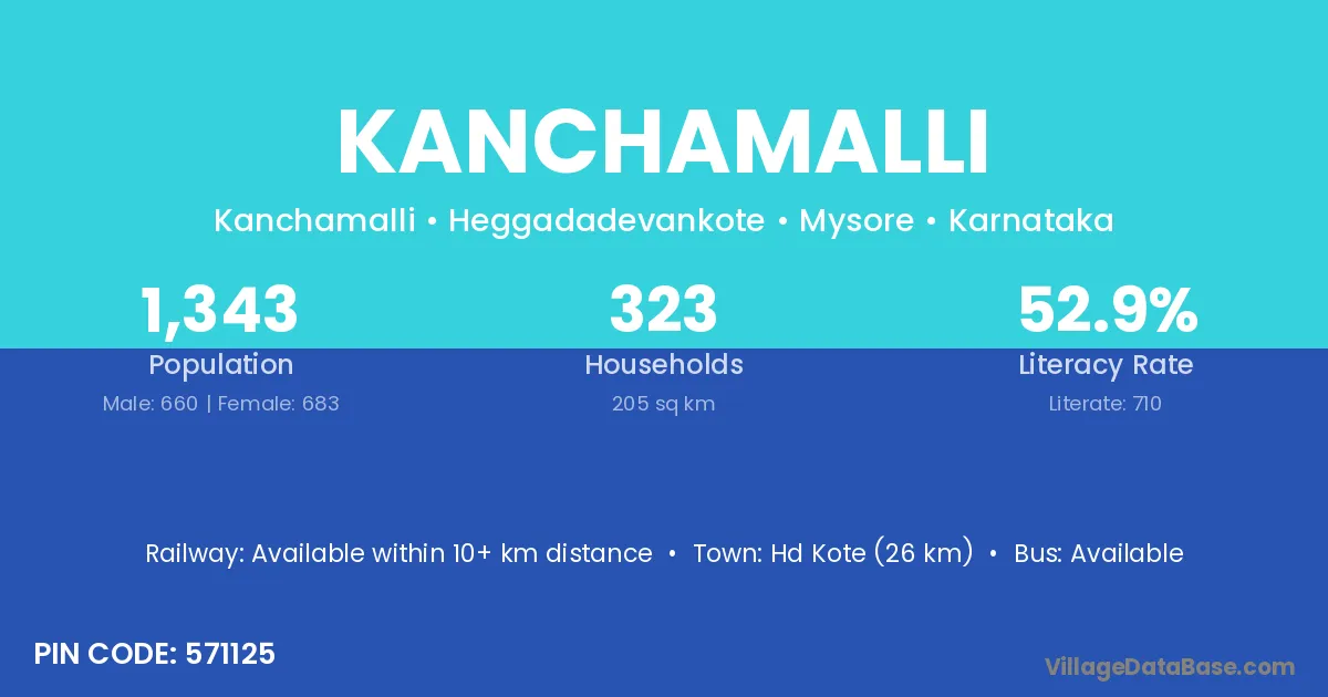 Hd Kote (26 km) is the nearest town to Kanchamalli village for major economic activities and is located approximately 26 km away.