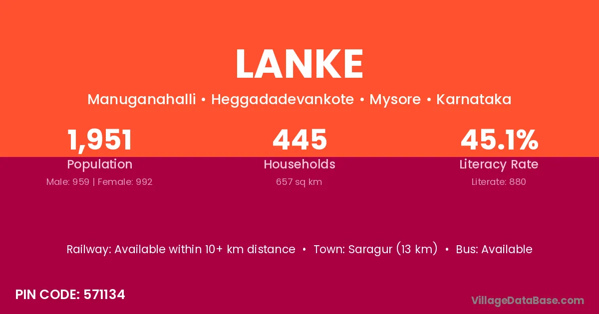 According to Census 2011 information, the village code of Lanke village is 571134.