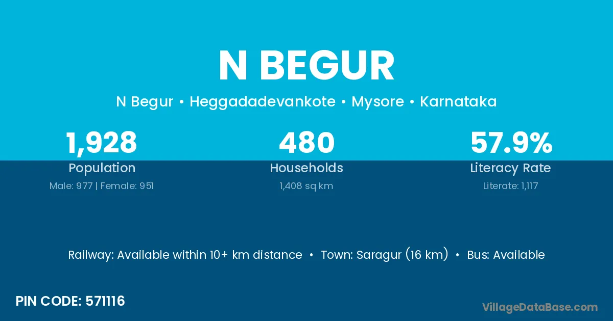 Saragur (16 km) is the nearest town to N Begur village for major economic activities and is located approximately 16 km away.