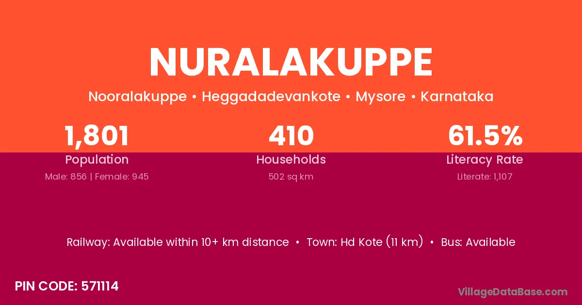 Hd Kote (11 km) is the nearest town to Nuralakuppe village for major economic activities and is located approximately 11 km away.