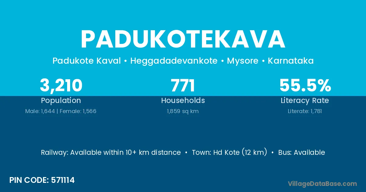 Hd Kote (12 km) is the nearest town to Padukotekava village for major economic activities and is located approximately 12 km away.