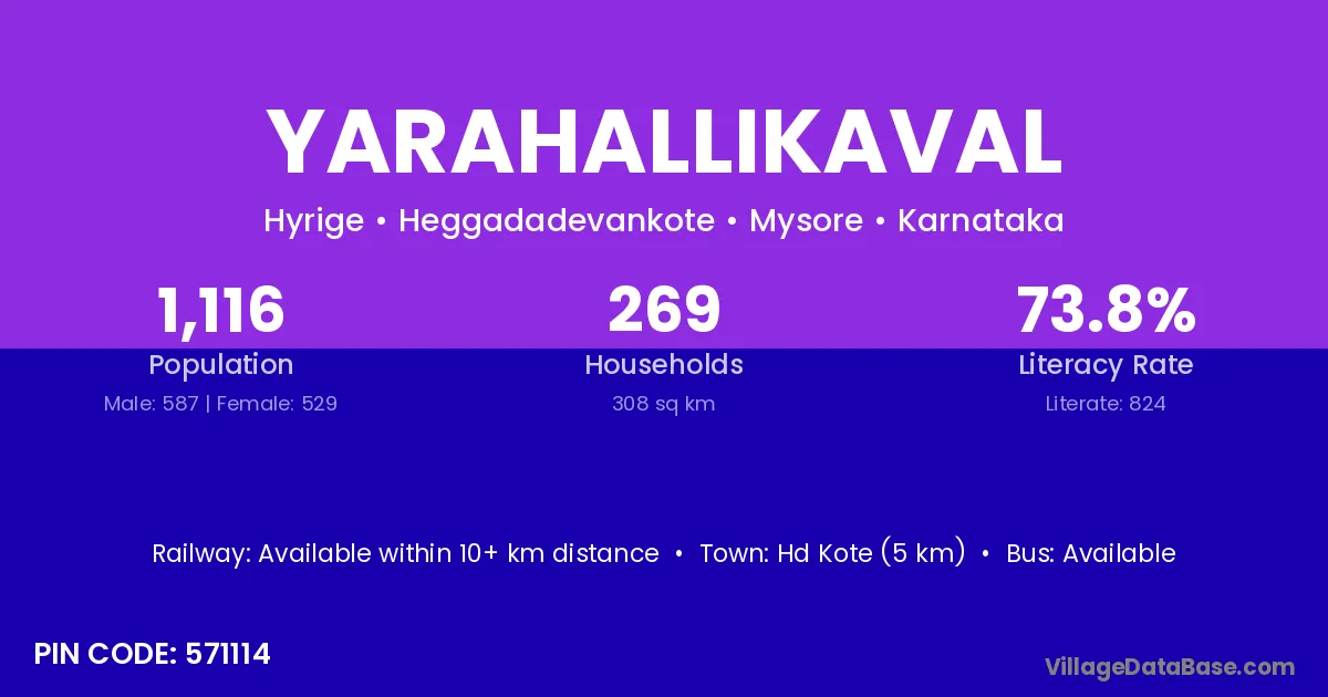 Hd Kote (5 km) is the nearest town to Yarahallikaval village for major economic activities and is located approximately 5 km away.