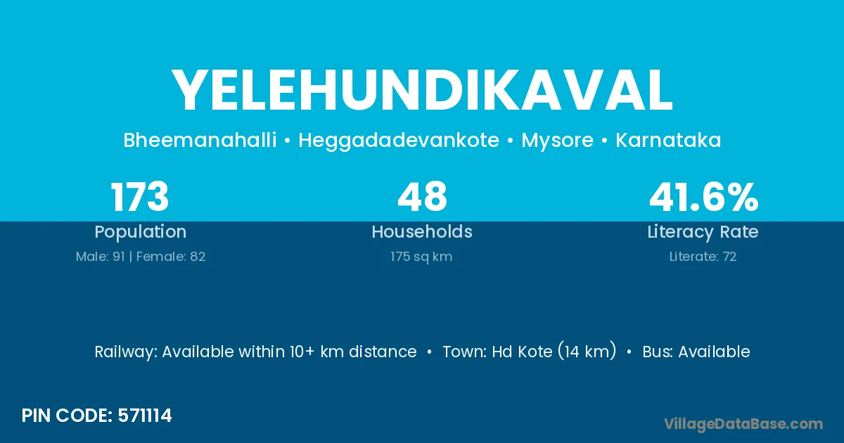 Hd Kote (14 km) is the nearest town to Yelehundikaval village for major economic activities and is located approximately 14 km away.