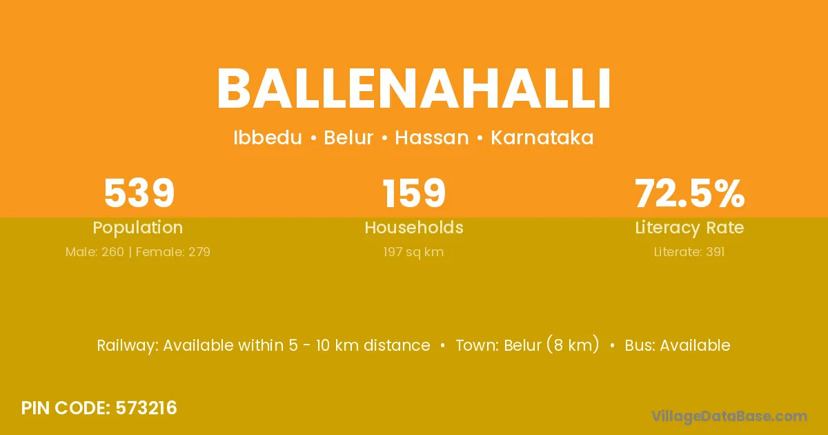 Ballenahalli village has a total population of 1,307 people, of which 641 are males and 666 are females.