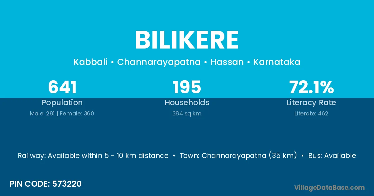 Krishnarajanagara (17 km) is the nearest town to Bilikere village for major economic activities and is located approximately 17 km away.