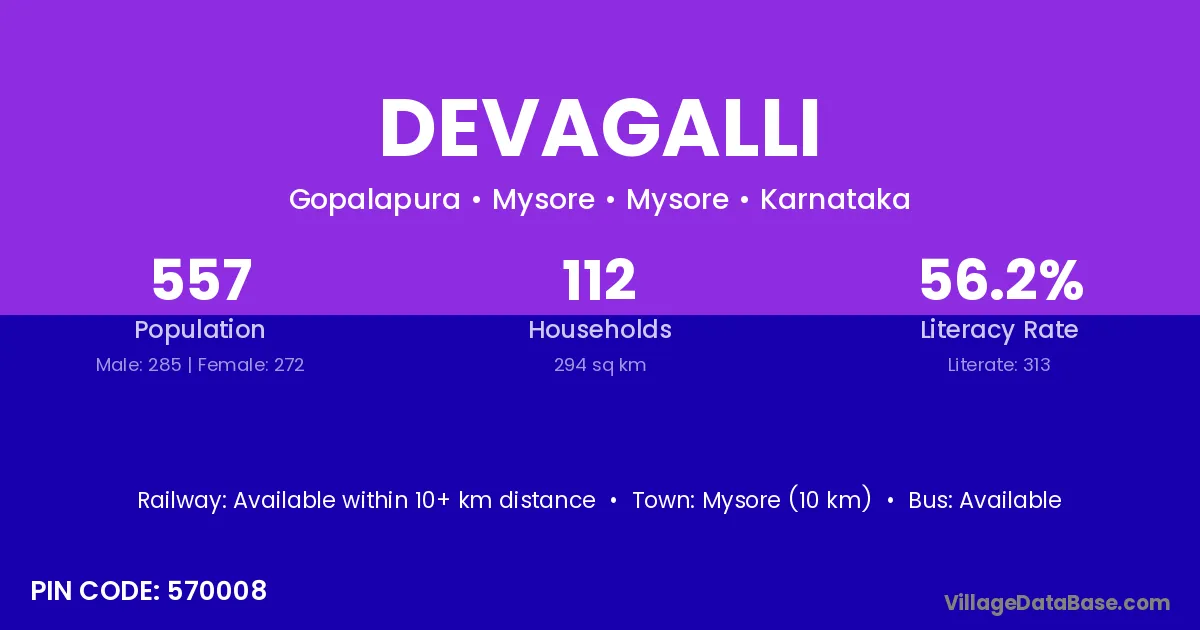 Hunsur (19 km) is the nearest town to Devagalli village for major economic activities and is located approximately 19 km away.