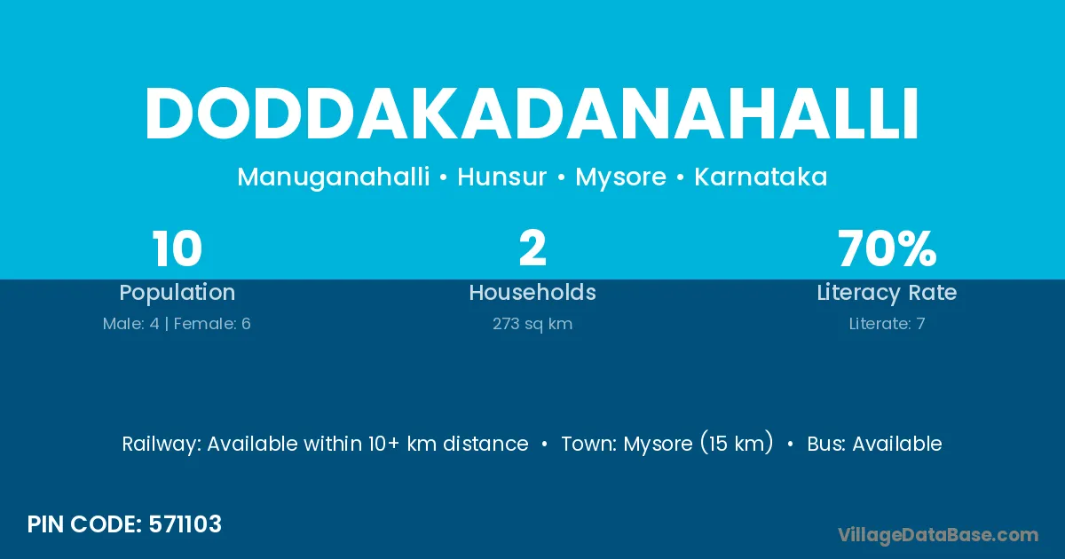 Mysore (15 km) is the nearest town to Doddakadanahalli village for major economic activities and is located approximately 15 km away.