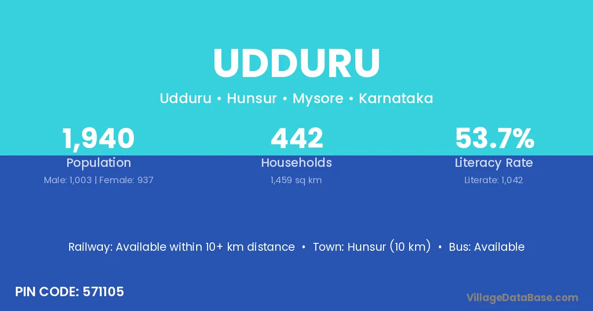 Hunsur (10 km) is the nearest town to Udduru village for major economic activities and is located approximately 10 km away.