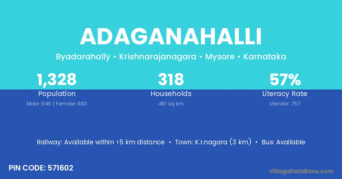 K.r.nagara (3 km) is the nearest town to Adaganahalli village for major economic activities and is located approximately 3 km away.