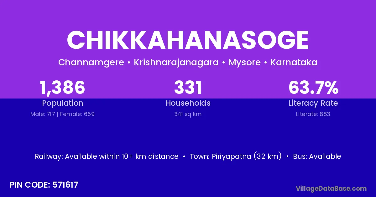 Piriyapatna (32 km) is the nearest town to Chikkahanasoge village for major economic activities and is located approximately 32 km away.