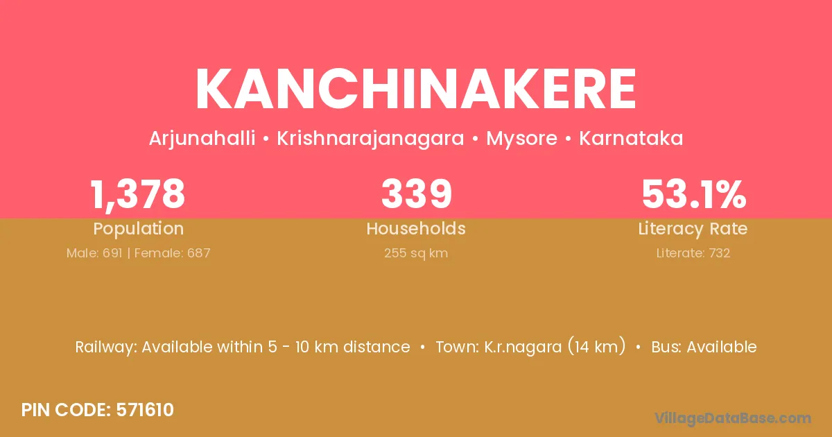 Kanchinakere village has a total population of 1,378 people, of which 691 are males and 687 are females.