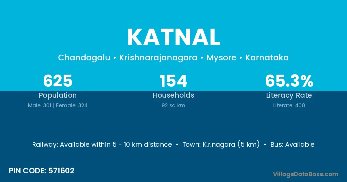 K.r.nagara (5 km) is the nearest town to Katnal village for major economic activities and is located approximately 5 km away.