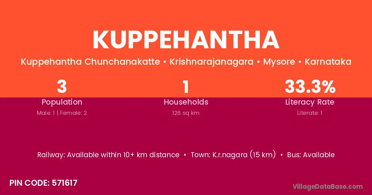 K.r.nagara (15 km) is the nearest town to Kuppehantha village for major economic activities and is located approximately 15 km away.